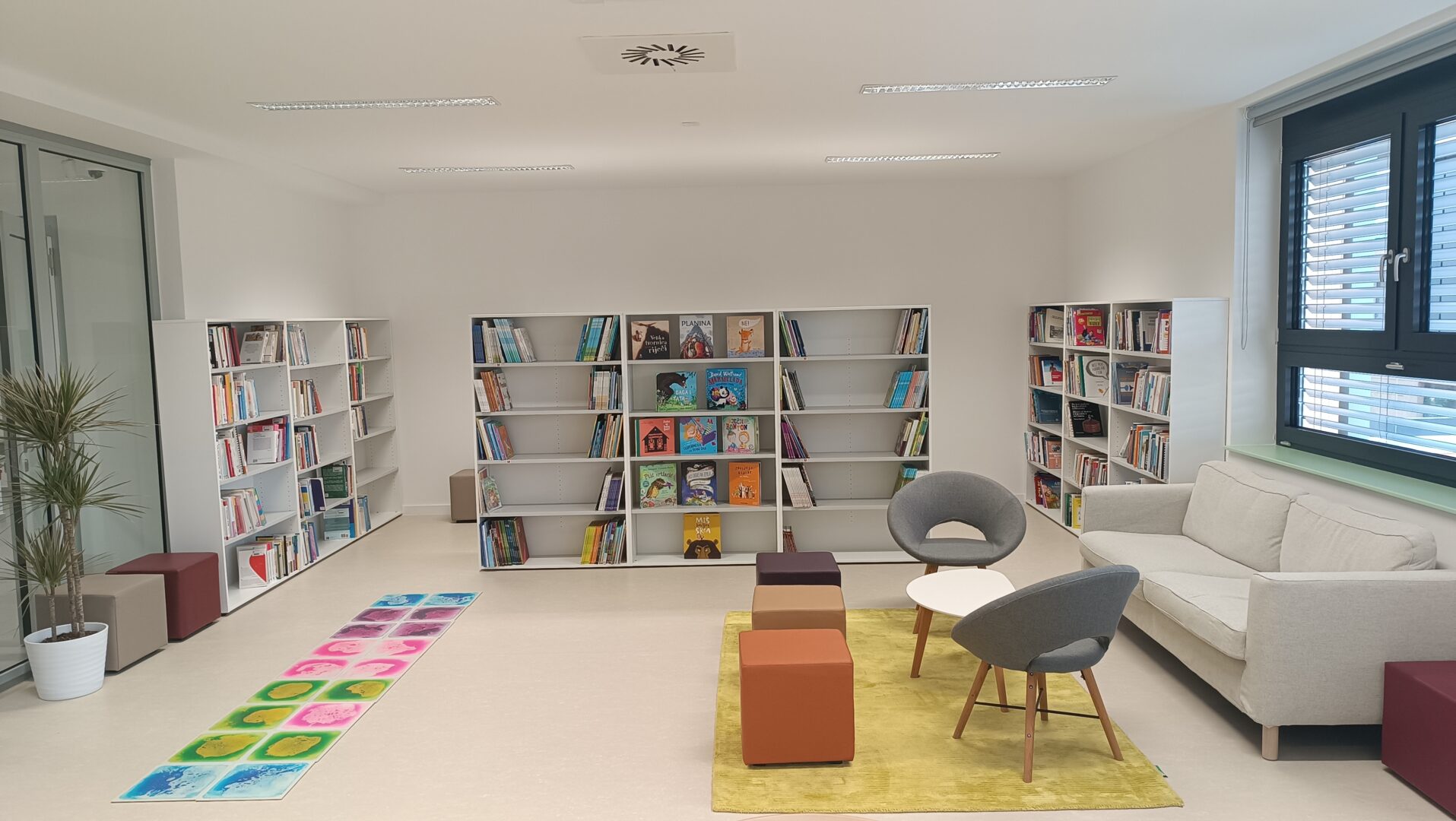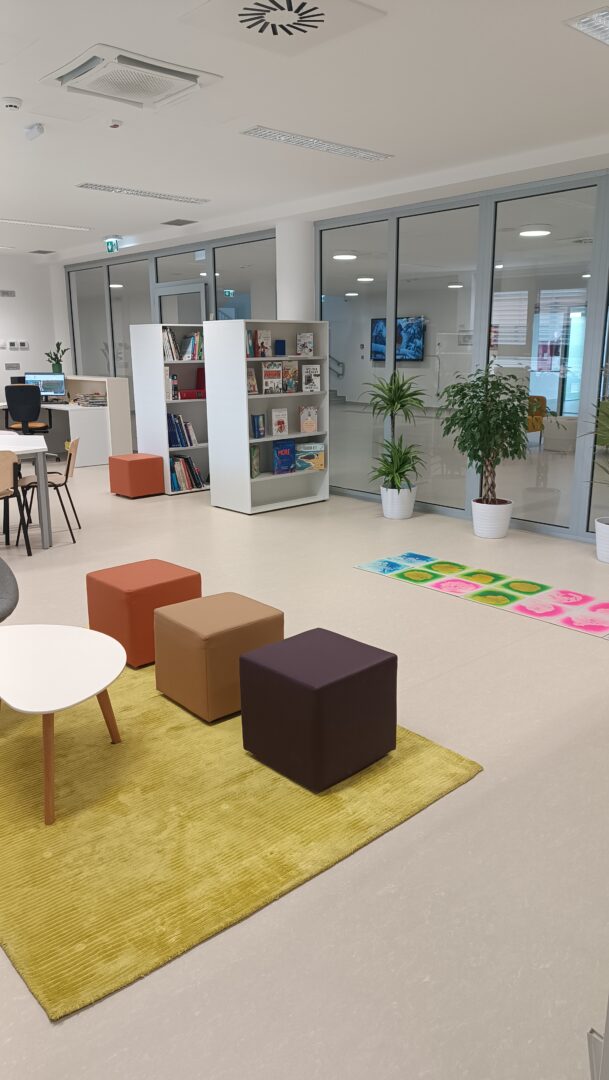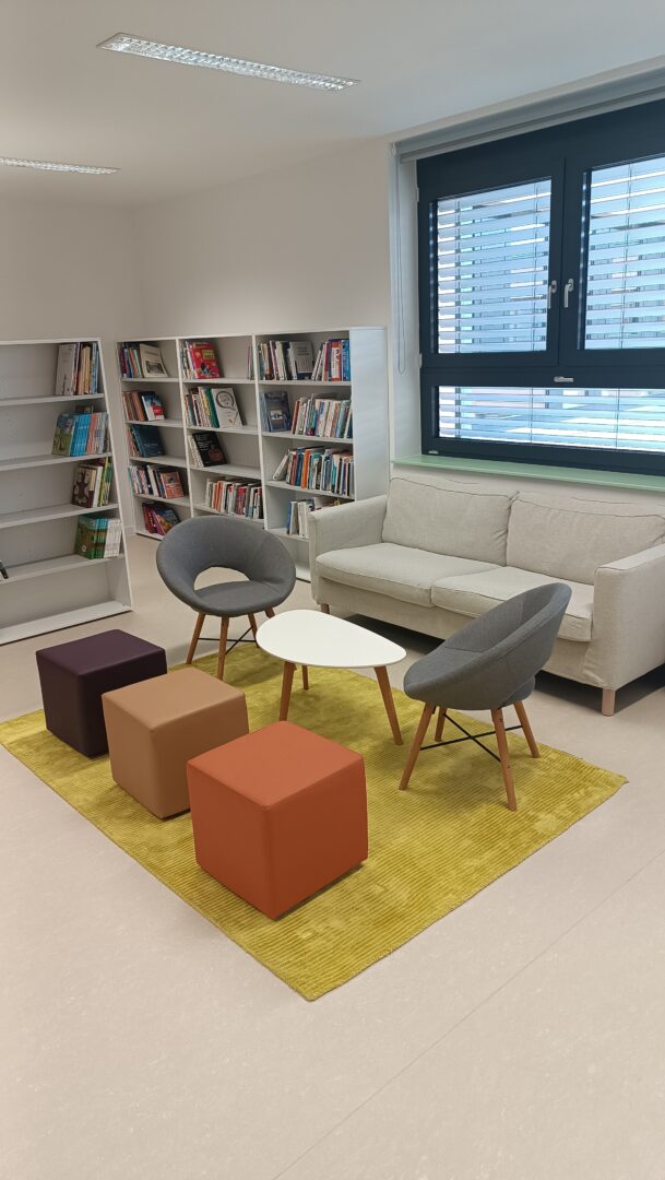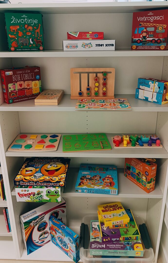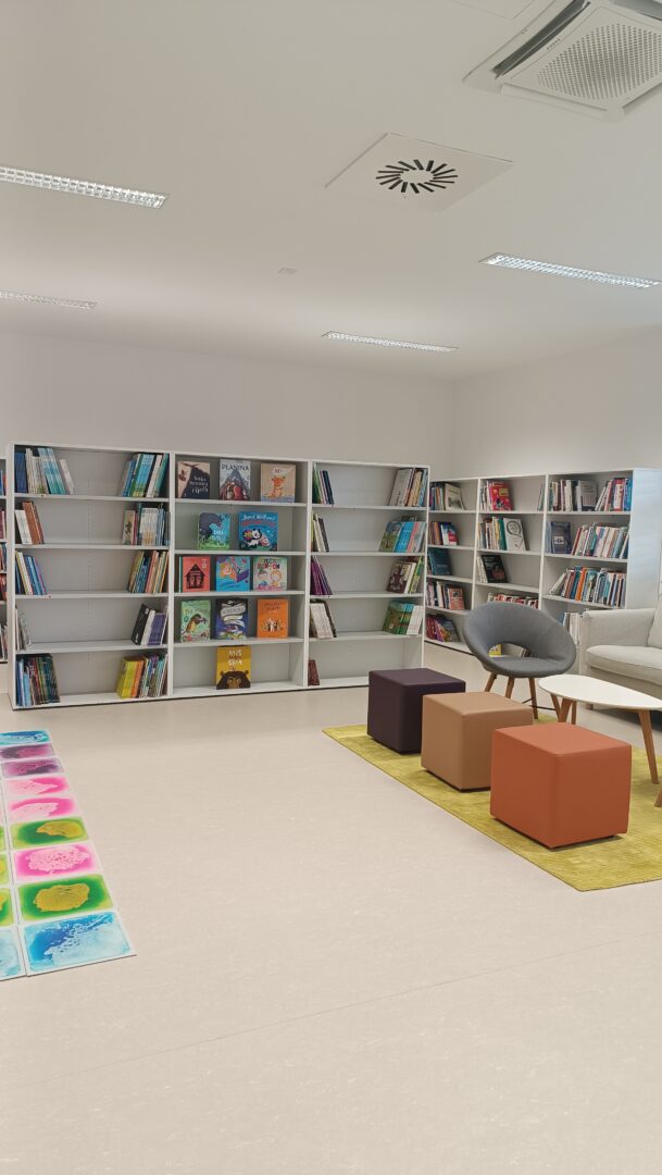 U knjižnici se svakodnevno provode aktivnosti poput čitanja priča i interaktivnih radionica. Naša knjižnica je i svojevrsni dnevni boravak Centra – ugodan prostor za čitanje, istraživanje i opuštanje.