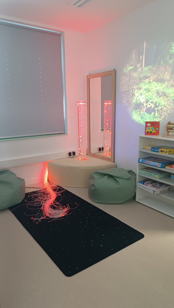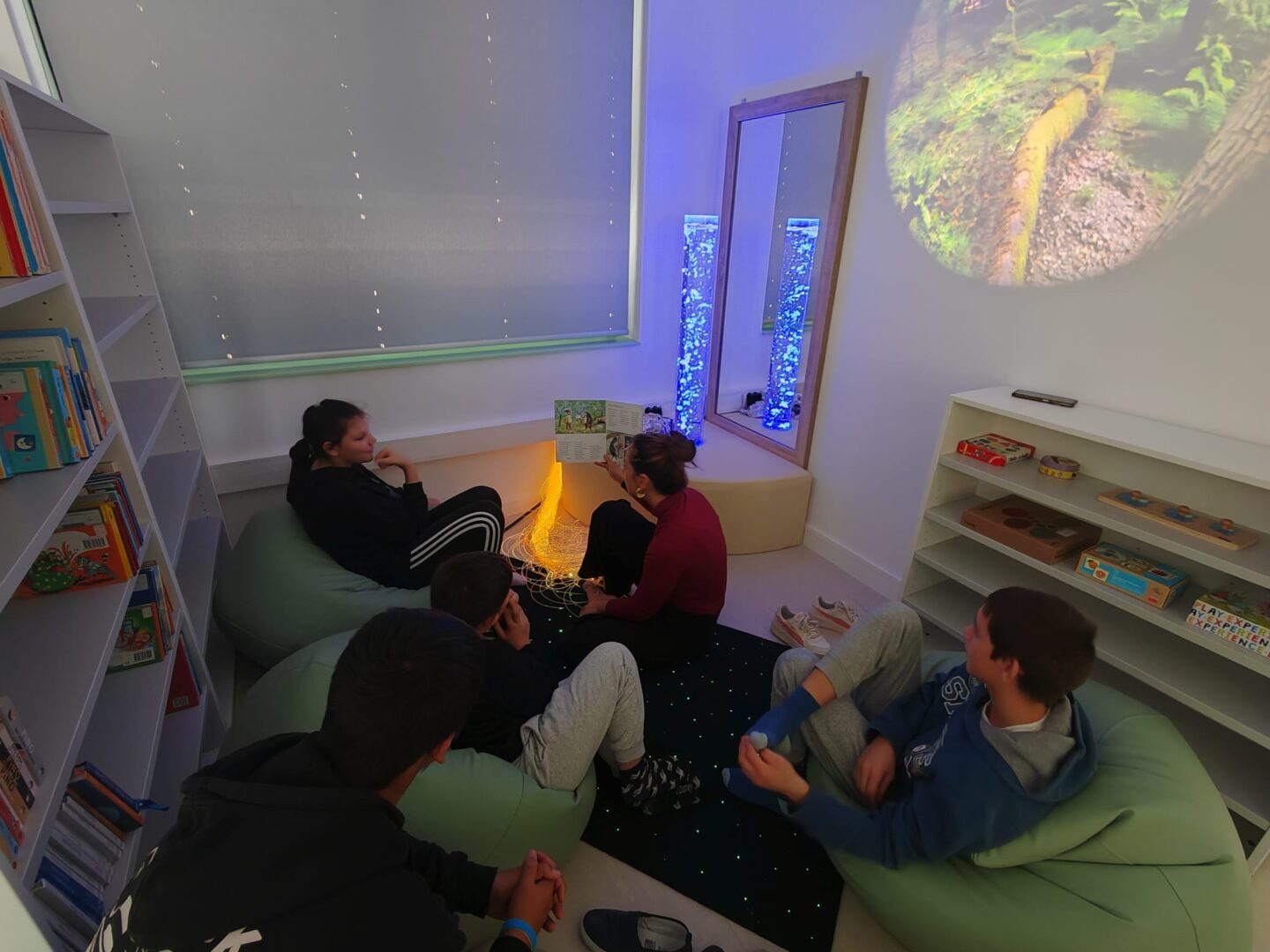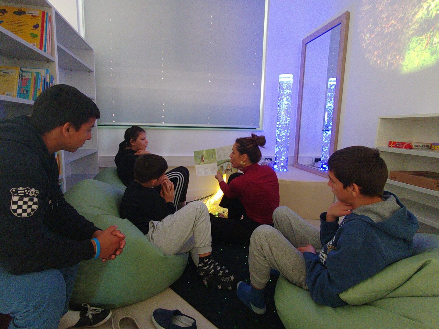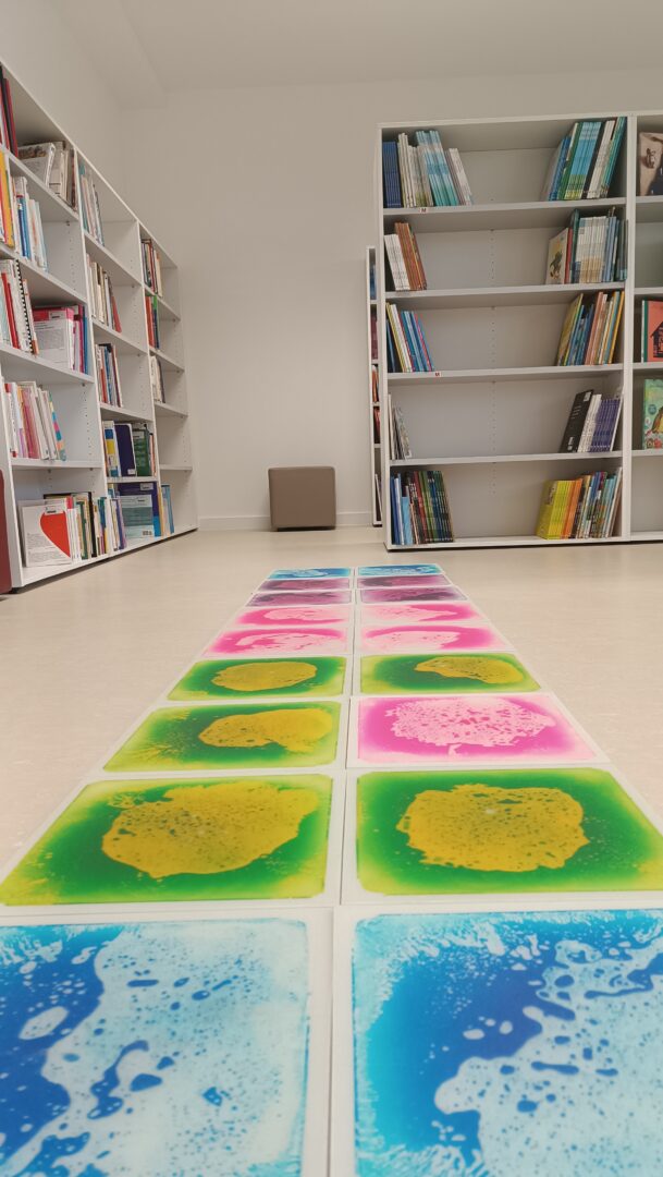 Posebnost naše knjižnice su senzorne ploče i posebno uređen senzorni kutak, osmišljen kao prostor opuštanja i poticanja osjetilnog razvoja. Učenici se u senzornom kutku mogu odmoriti i smiriti uz senzornu tubu ispunjenu vodom, optička vlakna i projektor s umirujućim sadržajima. Senzorne ploče potiču razvoj taktilne i vizualne percepcije, fine motorike i koncentracije te učenicima omogućuju istraživanje i učenje kroz igru.